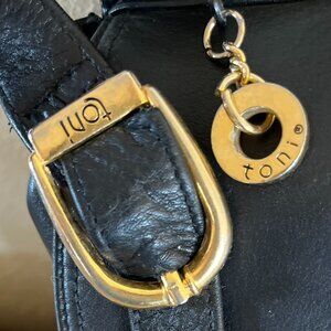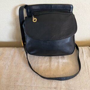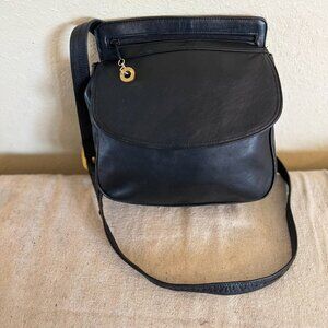 Vintage Toni Black Leather Bohemian Boho Hippie Flap Front Crossbody Bag