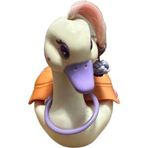Vintage Tonka Keypers / Keepers 1980's The Swan Princess little girls Safe Secret Lockbox Wings. White swan has Pink Hair which is tied back with a vintage 80s purple rubber band flower ribbon added. Too cute to take out! I do not have the little plastic toy key, so I cannot unlock the little heart key hole on her orange back.