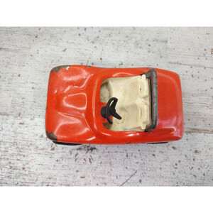 Heavily used vintage condition with heavy wear, scuffing, paint chips, rust, and dirt spots. Part of the steering wheel has broken off and is missing. Sold as is. Car measures approximately 3.75" long. See photos for more detail.