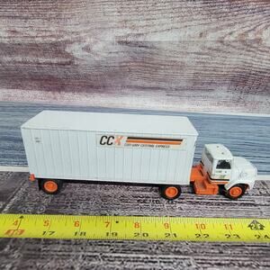 Vintage Tonkin CCX Ford areo semi and pup trailer die-cast white/orange