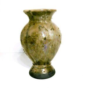 Vintage Tony Evans Designs Studio Raku Pottery Vase Brown Iridescent Textured. Condition is preowned. This vase from Evans Designs exudes a rustic charm with its textured finish. Its earthy tones make it a striking addition to any interior decor, perfect for displaying dried flowers or as a standalone piece. With its unique design, it captures the essence of handmade artistry. (PM05)