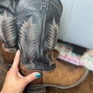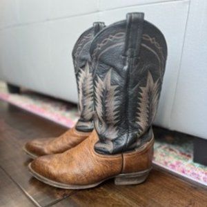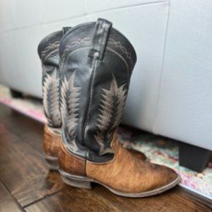 Excellent vintage condition authentic Tony Lama boots. This leather is so beautifully broken in, with no major signs of wear. Perfect black/brown combo to match any outfit. Main sign of wear is on the soles as pictured. Men’s size 9/Women’s 10.5. Smoke free home.