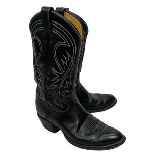 Vintage Tony Lama Boots Mens 9D Black White Stitching Cowhide #6238 Made in USA