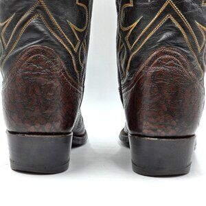 Step into a piece of history with these vintage 1970s Tony Lama Cowboy Boots. Made from genuine Caribou leather, their intricate stitch patterns and robust construction reflect the craftsmanship of El Paso, Texas. These boots not only promise durability but also a timeless style that speaks volumes of the era they hail from. A true collector's item for enthusiasts and a stylish statement for those who appreciate quality and tradition.