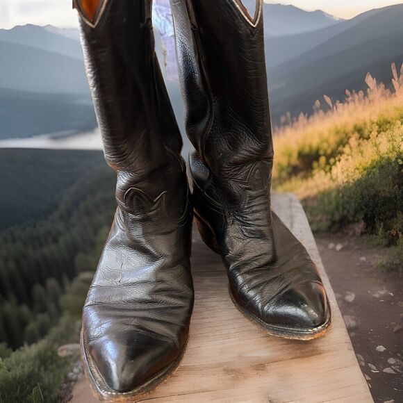 Vintage Tony Lama Mens Country Western Boots 4110 Sz. 9B Nice Black Leather EUC