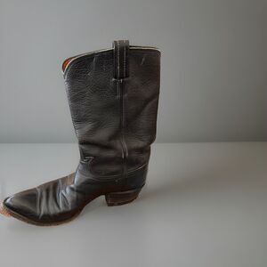 These Tony Lama men's boots are the perfect addition to any cowboy's wardrobe. The pointed toe and solid pattern give them a classic look that will never go out of style. Made with high-quality leather, these boots are built to last and will provide comfort for all-day wear.