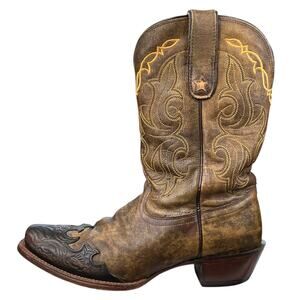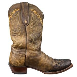Vintage Tony Lama Vaquero Santa Fe Brown Leather Cowgirl Boot Size US 9 B