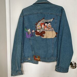 Vintage Too Cute Flintstone Denim Jean Jacket Size 2 Unisex