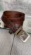 1” Width. Very good vintage preowned condition, patinated aged & supple leather, scratching on buckle. Great tooled design on full length of belt. No brand that I can see. Please view all photos as they are part of the description. Western Cowboy Tooled Leather Brown