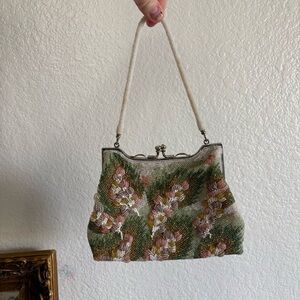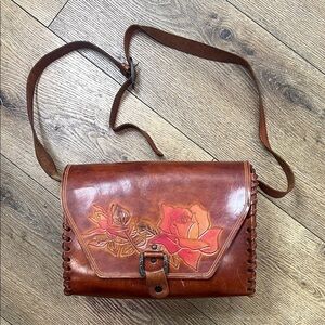 Vintage Tooled Hand Painted Floral Butterfly Leather Mini Bag