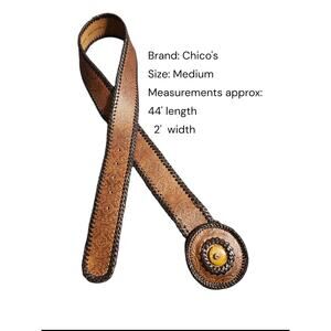 Chico's Womens Medoum Adjustable Decorative Tooled Waist Brown Leather Belt . Condition is Pre-owned - Excellent. Shipped with USPS Ground Advantage.