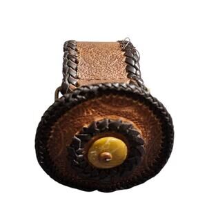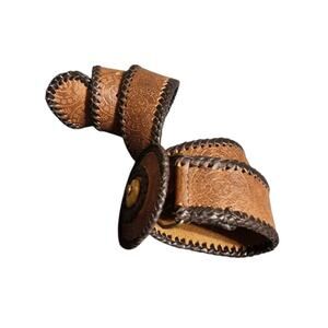 Vintage Tooled Leather Belt Brown Western Braided Edge Snap Buckle Boho Festival