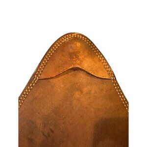 Hand-tooled leather triangle with a noble horse head and rustic stitching. Makes a perfect Western wall accent—easy to hang using finishing nails or leather loops.