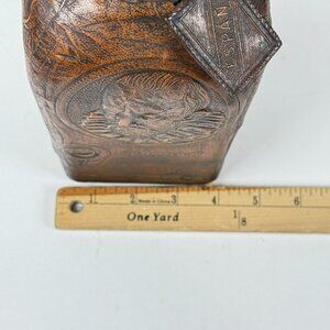 Vintage Tooled Leather Liquor Empty Whiskey Bottle Holder Chain Cork Stopper
