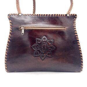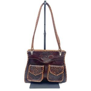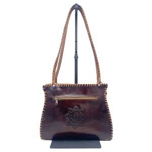 Vintage Tooled Leather Purse Brown Shoulder Bag Western Boho Saddlestitch