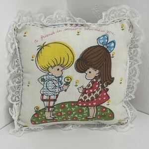 Vintage Tooth Fairy Pillow w Pocket lace Edges Joan Walsh Anglund Print unisex.