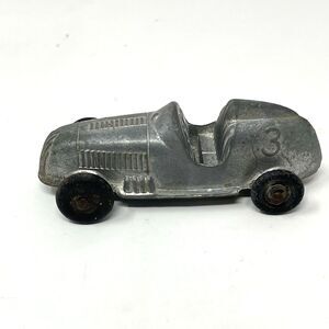 Vintage Tootsie Toy Race Car Number 3 Silver Metal Made in USA Collectible. Approximately 3.5" long. It does have wear and marks.