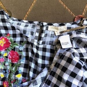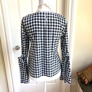 Vintage Rebellion Black & White Check Embroidered Top w Long Bell Sleeves (S)