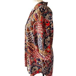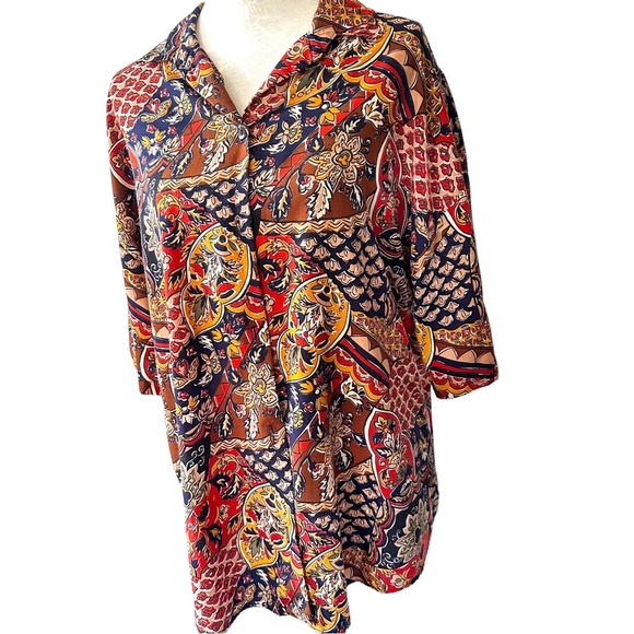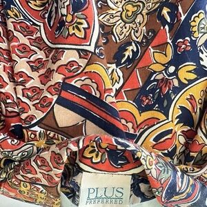 Vintage print shirt by Plus preferred. This top features a wonderful print in fall colors, light weight, comfortable and versatile. Wear it as a top or a comfortable loungewear at home or on travel, on the beach or at lunch with jeans or pant.