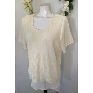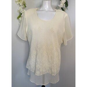 Vintage Top Choice Fashion Beaded Embellished Ivory Blouse Tag Sz XXL Fits L USA