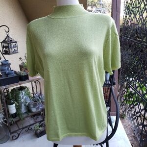 Vintage Top | Citron Green Sparkly Knit Pullover