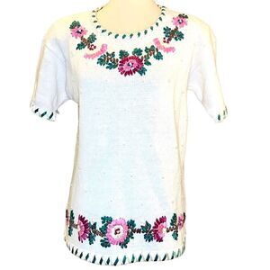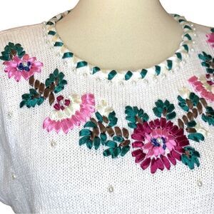 Vintage Top Colleen's Collectables Sweater Knit Floral Embroidered Pearl • NEW •