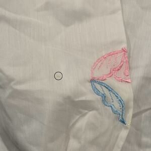 Vintage Top Cottage Coastal Grandma Boho Embroidered Floral Button Up White 2X