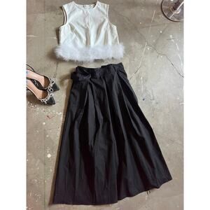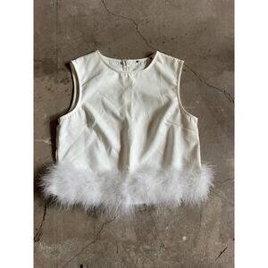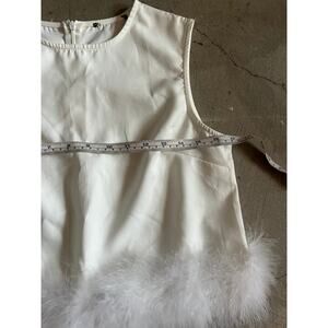 Vintage Top, Feather Trim White, Box Top, Retro Mid century Style