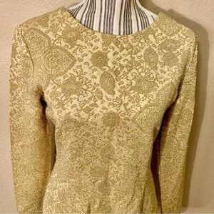 Vintage Top Medium AquaForte Made in Italy Gold Jacquard Lace Victorian pattern