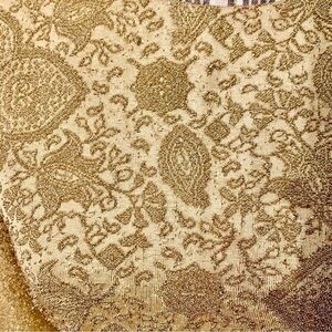 Rich Gold color with a gold Jacquard Lace Victorian Pattern. Long -Sleeved in a fitted design.