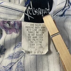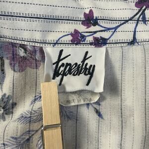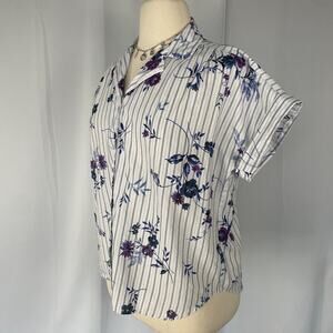 Vintage Top Plus Size 1X White Purple Floral Stripe Short Sleeve Casual Cottage