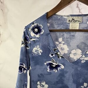 Vintage Top Womens Medium Blue Y2K Floral Blouse Cropped Shirt Slinky Wet Look