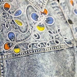 Vintage Top Womens Large Denim Button Up Embroidered Acid Wash Grunge Shirt