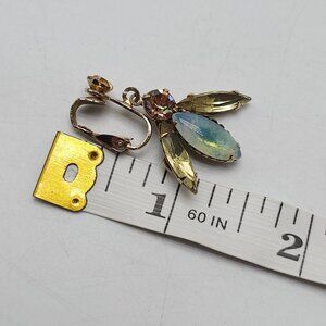 Vintage Topaz Rhinestone Opalescent Glass Clip-On Earrings Gold Tone Settings