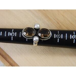 Vintage Topaz Sterling Silver Ring, Brown Topaz, Pearl Multi Stone Ring Sz 6.25