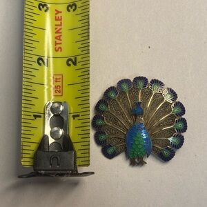 Vintage Topazio Blue Enamel & Sterling Peacock Pin #4828