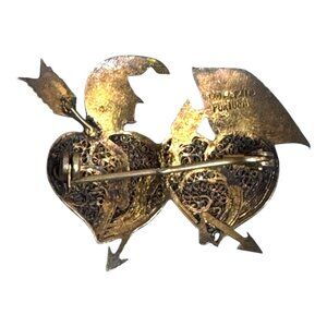 Vintage Topazio Portugal Gold Filigree Enamel Brooch Cupid Hearts Arrows RARE