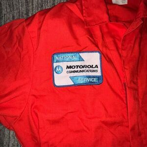 Vintage ToppMaster Mens Size Large Tall Motorola Coveralls Flight Suit Red One Piece