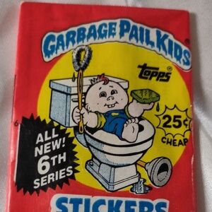 Discover the fun with 1996 Topps Garbage Pail Kids stickers. Bright red. Includes 5 stickers and bubble gum. Please do not chew gum as it is 30 years old :)