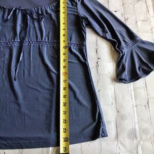 Vintage Tops Plus Top Size M/L Lace Detail Quarter Bell Sleeves Blue