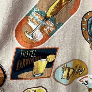 vintage hawaiian shirt, cocktail print shirt, short sleeve shirt, tori richard shirt, casual wear, men's summer shirt, cocktail graphics, crinkle fabric shirt, men's hawaiian shirt, retro style shirt, beachwear shirt, novelty print shirt, size large, Hawaii, Matching Husbands, fun, vacation, cruise