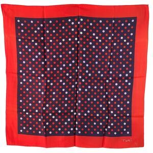 Vintage Tori red white blue polka dot acetate scarf 26 x 26