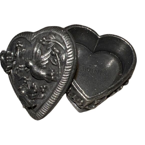 Vintage Torino Pewter Trinket Box - Heart - Heart is Brooch & Birds are Earrings