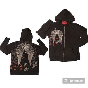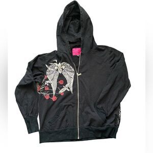 Vintage Torrid Born Famous Couture Hoodie Sequin Wings Rose Black Size Large