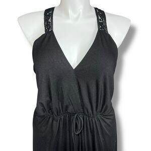 Vintage Torrid Womens Maxi Blouson Sundress V Neck Sleeveless Lace Back Black 4X