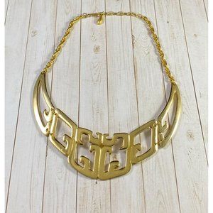Vintage Tortolani Necklace Abstract Shiny Gold Tone Bib Designer 15.5 inches