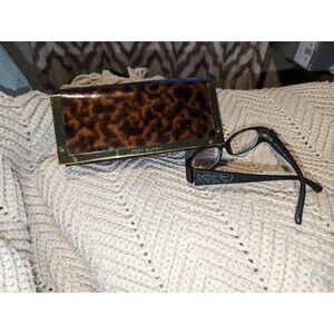Vintage Tory Burch Y2K Black Leather Eye Glass Frames Only & Tortoise Case