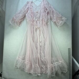 Vintage Tosca Long 2 Pc Nightgown Peignoir Robe Set Small Nylon Pink Lace