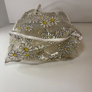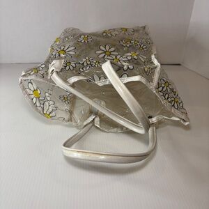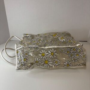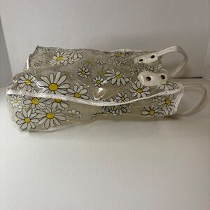 Vintage Tote Bag Clear Vinyl Plastic Daisies Flower Power 12"x9" Boho/Hippie