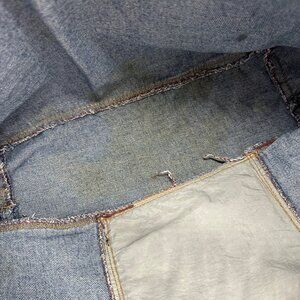 Multiple stains throughout, some general wear, and a tear on the inside back of the pocket.